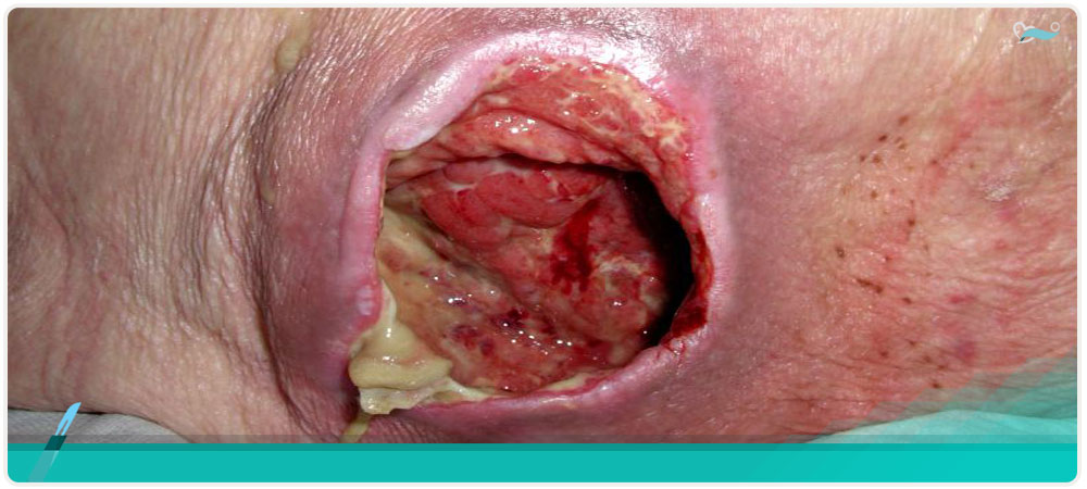 - مرحله 3- زخم بازاست وبافت زیرپوست هم آسیب دیده است و بعضا بافت چربی زیرین نیز قابل مشاهده است.